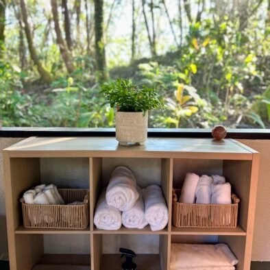 Words hardly capture how grateful we are to have found Naomi and her tropical hideaway. This place is a true gem, tucked into a lush, vibrant food forest with ripe fruits growing just steps from the door. The cottage is beautiful and impeccably clean, with screened windows that invite the sounds and warmth of the jungle in while still feeling cozy and protected. Mornings spent making fresh coffee to the sounds of birds singing was simply magical. If you have the chance to book a massage with Naomi, do it! The spa experience is beyond luxurious and unlike anything you’d find at a typical resort. The care and intentionality Naomi and Todd have poured into this land and space is incredible. We can’t recommend it highly enough and are already planning our next trip back!