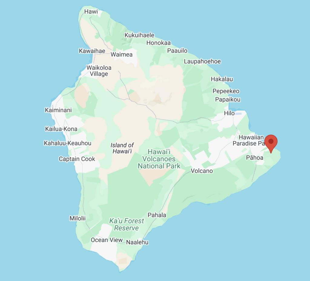 We are located on the east side of the Big Island of Hawai’i, 20 minutes from the town of Pahoa. The closest airport is Hilo International, which is a 45 minute drive. We are a two hour drive from Kona International airport.
